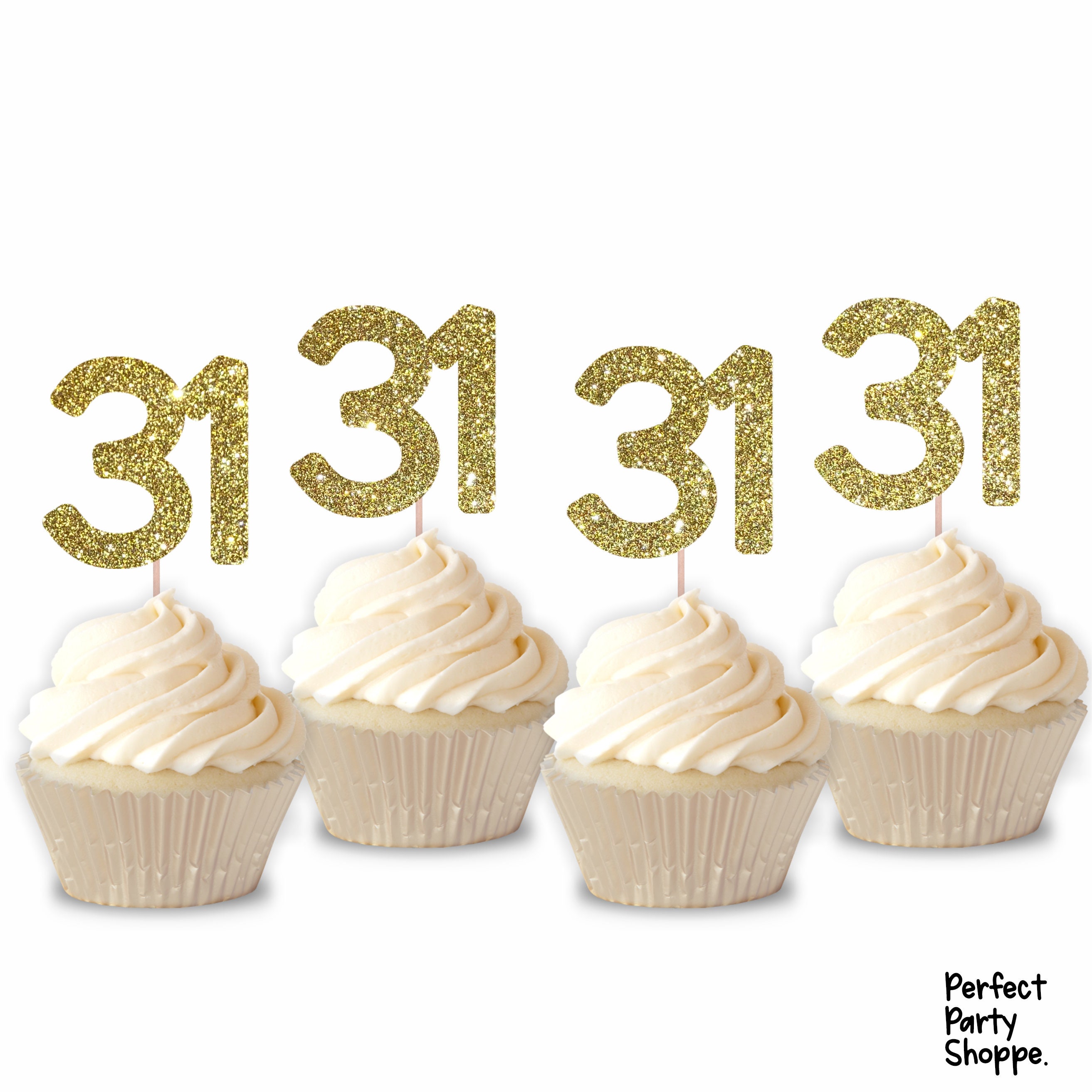 Amazon Com Cakesupplyshop Tema 031cta 31 Cumpleanos Aniversario Cheers Super Sparkle Elegante Purpurina Color Dorado Pastel Decoracion Topper Comida Gourmet Y Alimentos